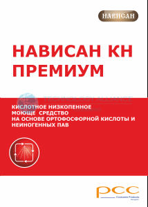 ОПИСАНИЕ Нависан КН Премиум – средство моющее кислотное низкопенное, на основе ортофосфорной кислоты для профессионального применения на предприятиях пищевой и непищевой отраслей промышленности, объектов агропромышленного и животноводческого комплексов ПРИМЕНЕНИЕ Средство предназначено для “туннельной” мойки сырных форм, внешних и внутренних поверхностей оборудования, промышленных емкостей. Применяется для мойки замкнутых контуров (СИП-мойки) оборудования, контактирующего с пищевыми продуктами для кормления животных, внешних и внутренних поверхностей оборудования, промышленных емкостей. СОСТАВ Ортофосфорная кислота, поверхностно-активные вещества, ингибиторы коррозии СВОЙСТВА Эффективен в отношении органических загрязнений Определяется методом титрования и кондуктометрически Содержит ингибиторы коррозии ЕМКОСТЬ 10л, 20л, 200л, DPPL 1000л