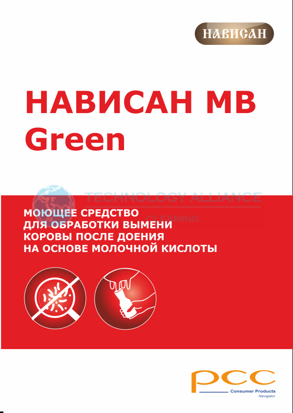 ОПИСАНИЕ Нависан МВ Green – средство предназначено для ухода за сосками вымени коров после каждой процедуры доения с целью профилактики мастита, сухости кожных покровов и появления трещин ПРИМЕНЕНИЕ Средство готово к использованию. Наносить с помощью специального стакана СОСТАВ Биологическая молочная кислота, пленкообразующие компоненты, глицерин, ланолин, аллантоин, краситель. СВОЙСТВА В качестве биоцида содержит молочную кислоту Эффективно для профилактики мастита Увлажняет кожу, препятствуя появлению трещин Снимает раздражение после доения Обеспечивает закрытие соскового канала Создает защитную оболочку вокруг соска Экономично в использовании ЕМКОСТЬ 10л, 20л, 200л, DPPL 1000л