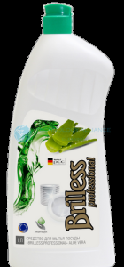 НАЗНАЧЕНИЕ: Средство для мытья посуды Brilless professional Aloe Vera предназначено для мытья всех видов посуды из различных материалов: стекла (в том числе хрусталя), фарфора, фаянса, тефлона, пластика, металла и другой. СОСТАВ: Вода, аПАВ 5-15%, амфПАВ 5-15%, хлорид натрия менее 5%, глицерин менее 5%, регулятор кислотности менее 5%, консервант менее 5%, замутнитель менее 5%, отдушка менее 5%, экстракт растительный менее 5%. ЁМКОСТЬ: 0,5 л, 1,0 л. КОЛИЧЕСТВО В УПАКОВКЕ: 10 шт.