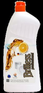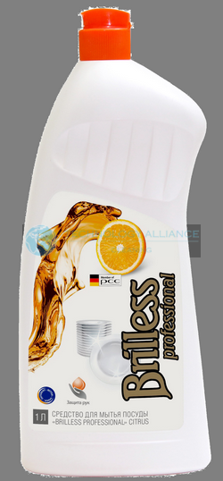 НАЗНАЧЕНИЕ: Средство для мытья посуды Brilless professional Citrus предназначено для мытья всех видов посуды из различных материалов: стекла (в том числе хрусталя), фарфора, фаянса, тефлона, пластика, металла и другой. СОСТАВ: Вода, аПАВ 5-15%, амфПАВ 5-15%, хлорид натрия менее 5%, глицерин менее 5%, регулятор кислотности менее 5%, консервант менее 5%, краситель менее 5%, уксусная кислота менее 5%, отдушка менее 5%, экстракт растительный менее 5%. ЁМКОСТЬ: 0,5 л, 1,0 л. КОЛИЧЕСТВО В УПАКОВКЕ: 10 шт.
